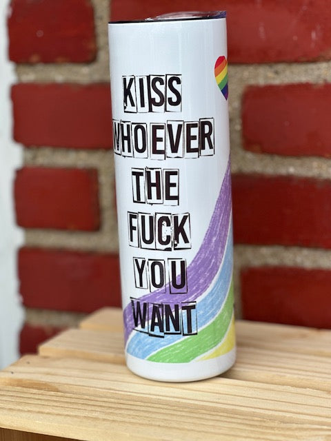 Raise a glass to unapologetic self-expression! Show off your bold attitude with our “Kiss However the F*ck You Want” tumbler! This white stainless steel tumbler is perfect for anyone who embraces their true self. With a generous capacity to keep your drinks hot or cold, it’s ideal for sipping your favorite beverages in style.